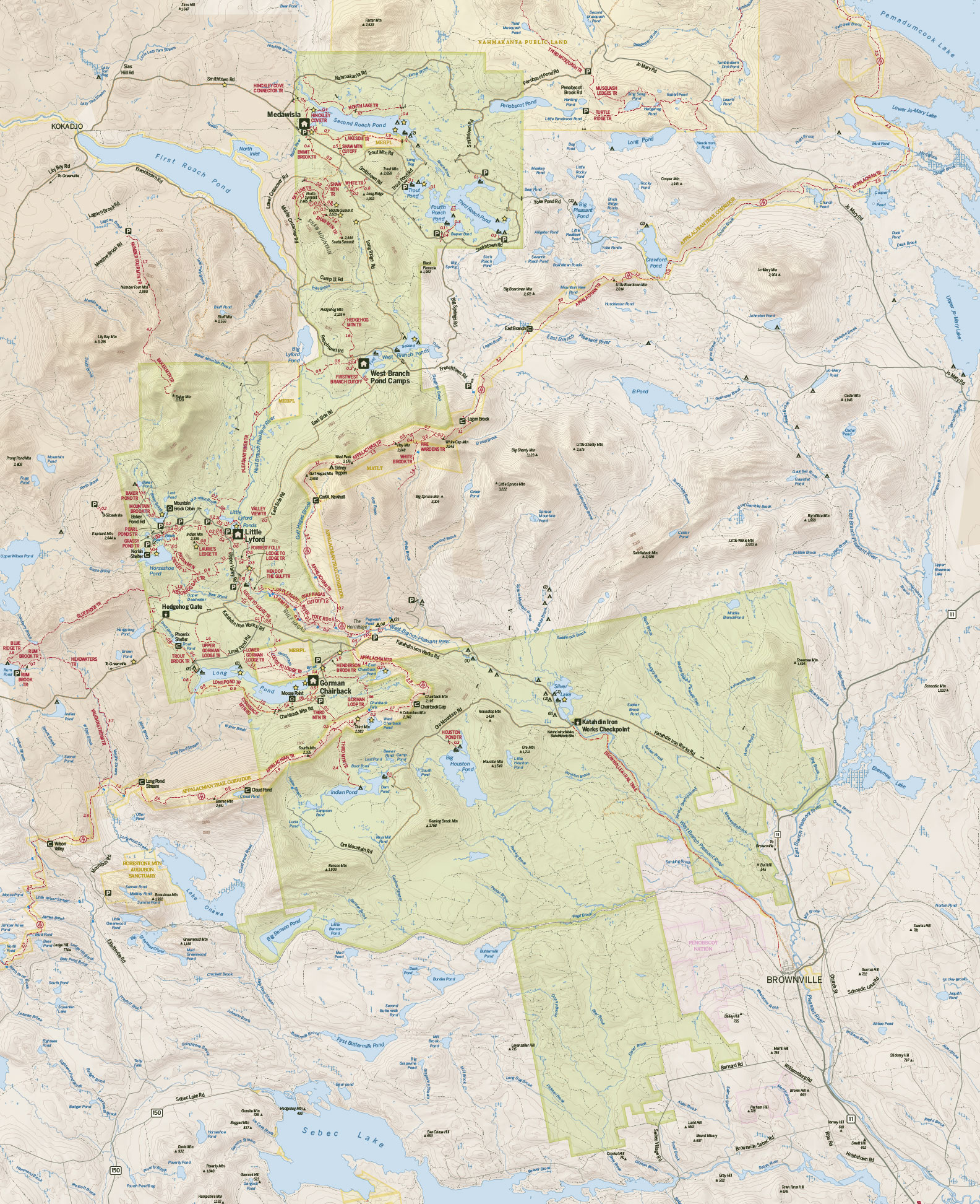 A decently sized cartography project we've completed for AMC is a new, unified map of trails and recreation in AMC's Maine Woods Initiative properties.